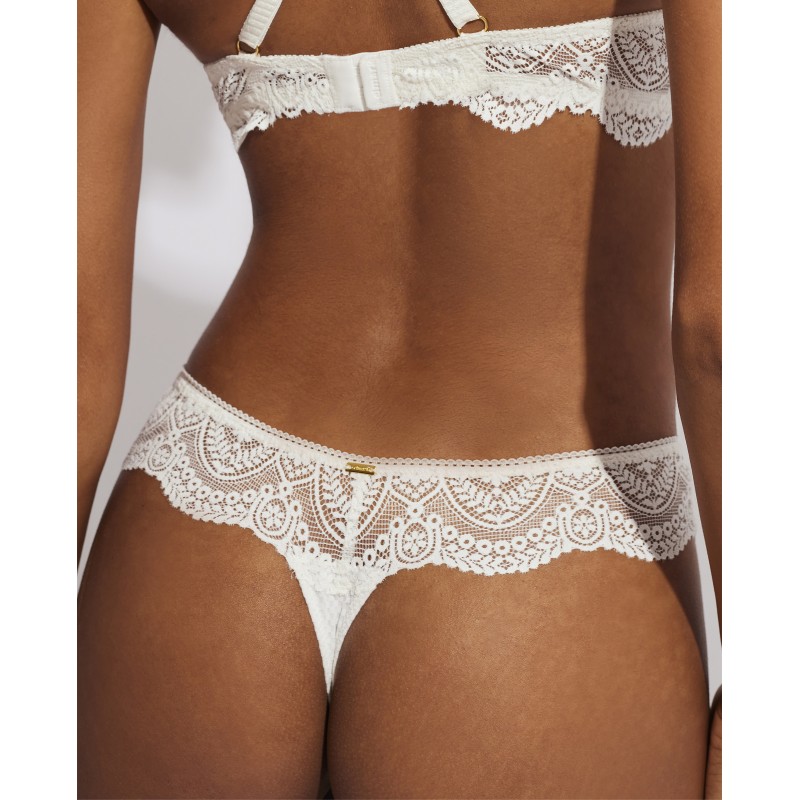 Braguita tanga. Su espectacular diseño de encaje le otorga un estilo romántico y bohemio a la vez. Este prenda conjuga sensualidad, frescura y elegancia, ideal para mujeres libres y auténticas.