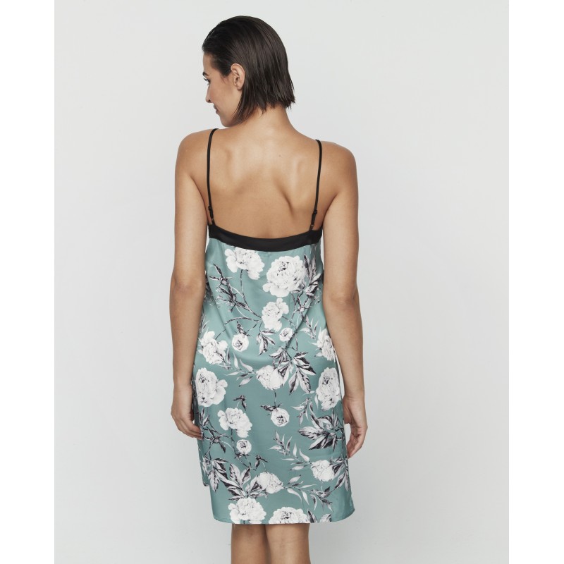 Camisón lencero corto con tirantes ajustables. De estampado floral. Una prenda elegante y sofisticada. La colección Malitzia, a la que pertenece, representa una danza perfecta entre lo delicado y lo atrevido.