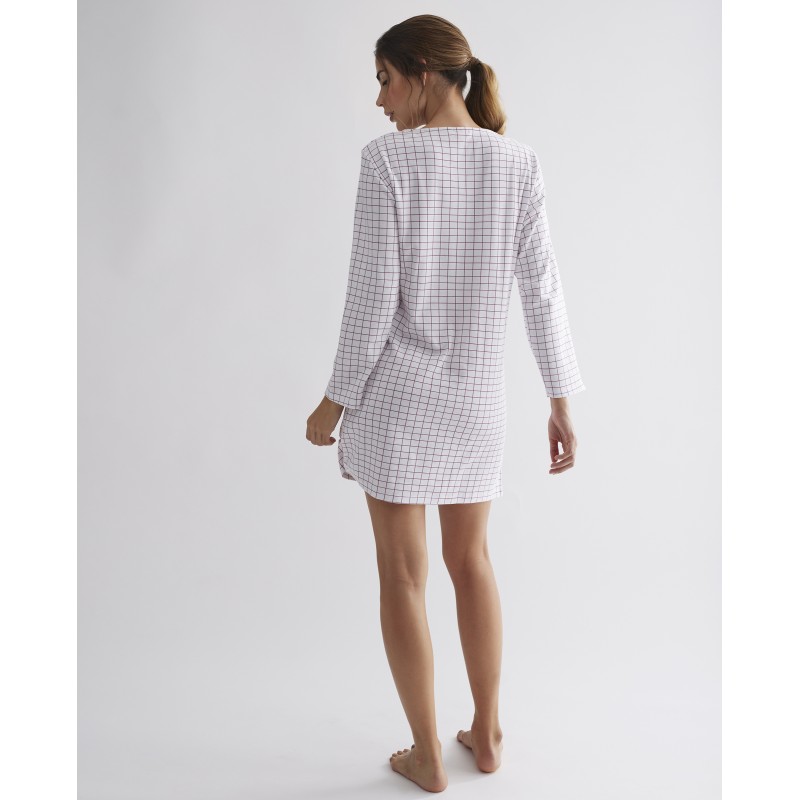 Camisón de manga larga. Con un estampado a cuadros y un diseño que garantiza una experiencia de sueño cómoda y placentera. Ideal para este invierno.