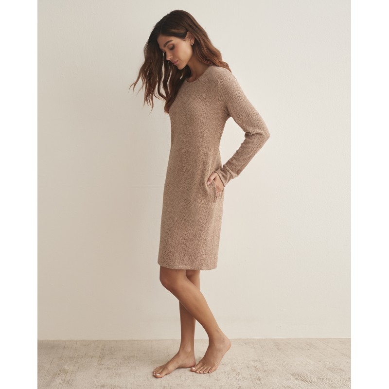 Camisón de manga larga. Con cuello redondo y bolsillos. De tejido suave, abrigado y con textura. Un diseño sencillo y atemporal, perfecto para noches de frío.
