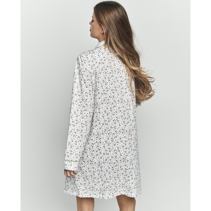 Camisón estilo camisa con mangas y largo hasta las rodillas y con botones al frente. Con un estampado floral romántico que brinda suavidad, frescura y encanto en una sola prenda.