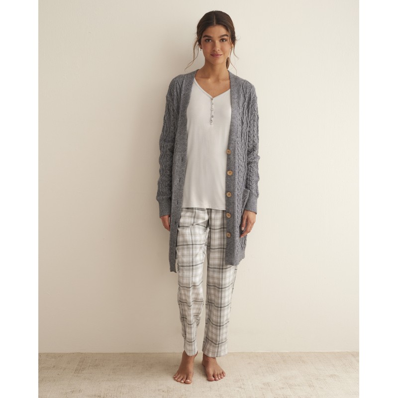 Chaqueta de punto con botones y bolsillos. Una prenda muy abrigada ideal para llevar sobre tu pijama o camisón en días fríos.
