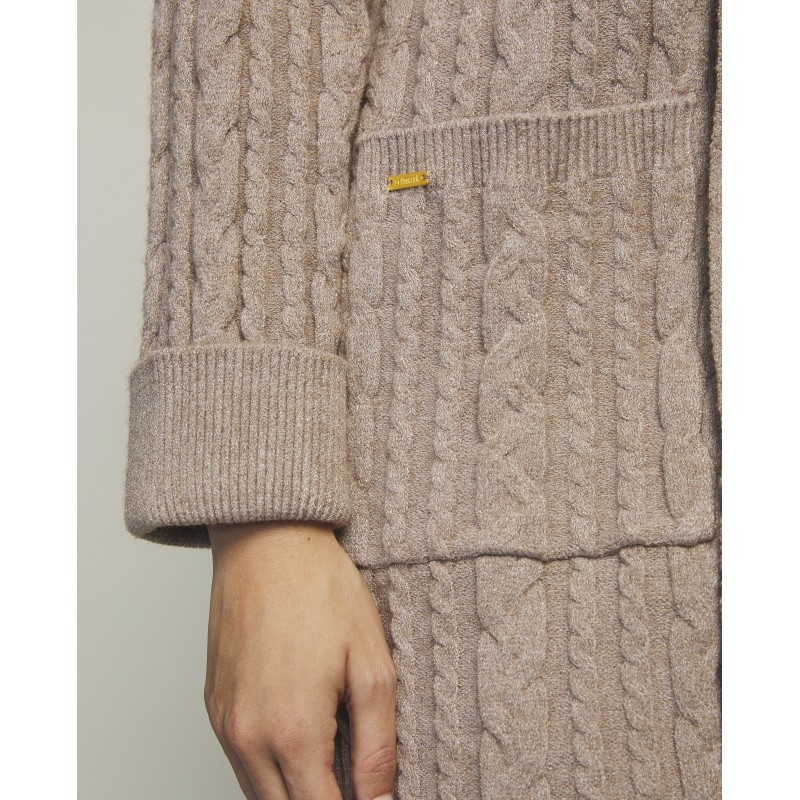 Cardigan largo de punto con corte clásico con bolsillo. Ideal para usar sobre camisón o pijama.