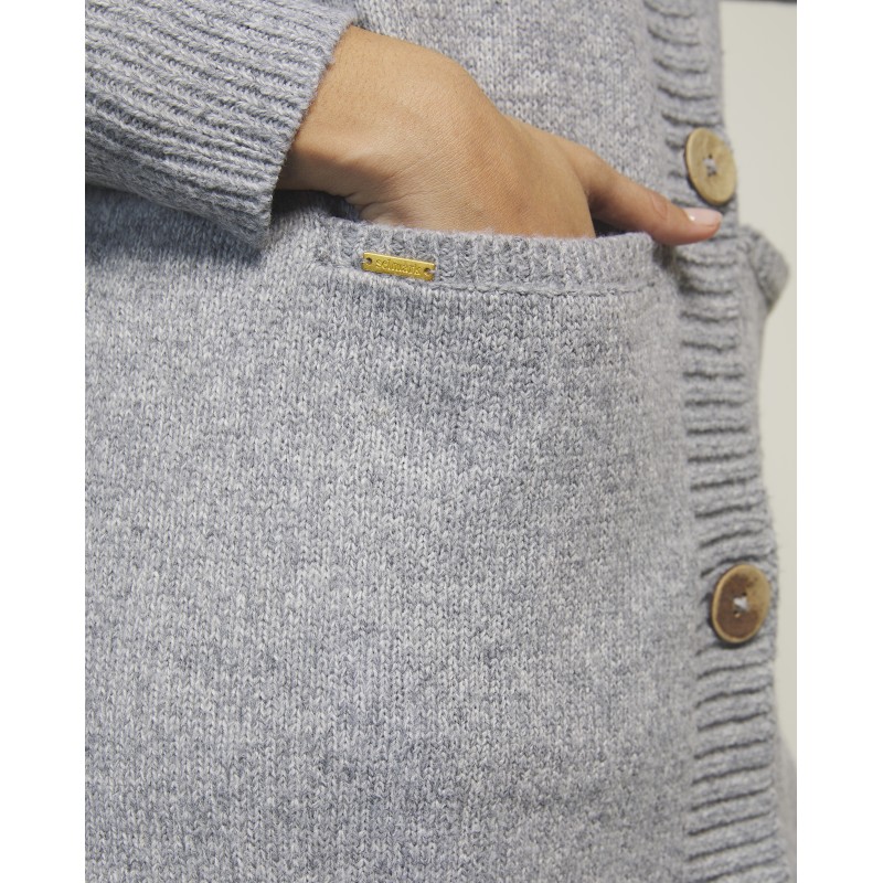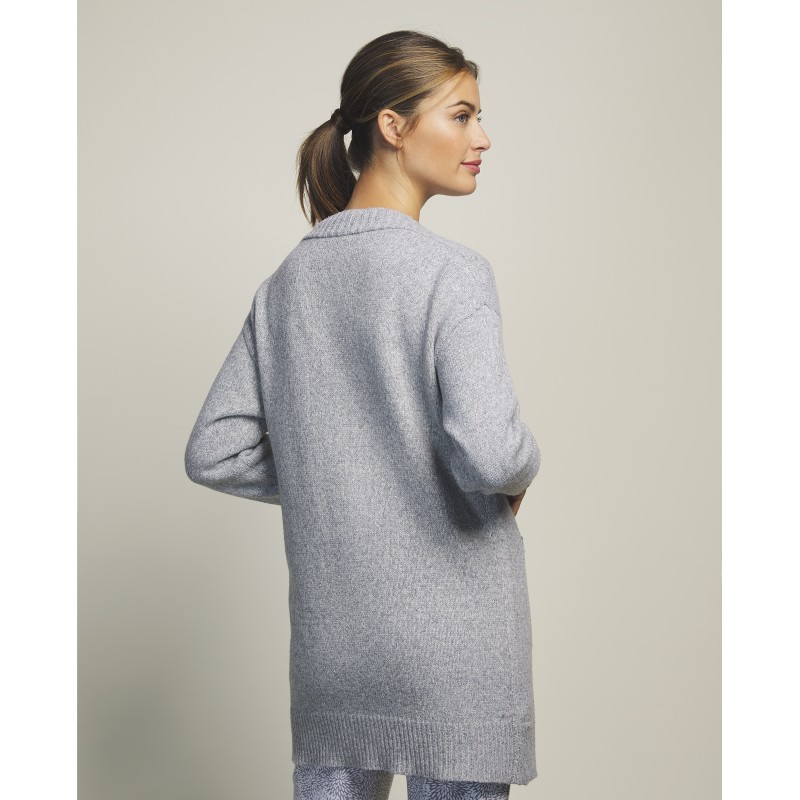 Cardigan largo de punto con corte clásico con bolsillo y botones. Ideal para usar sobre camisón o pijama.