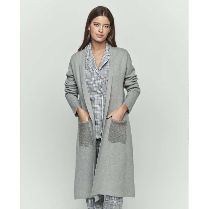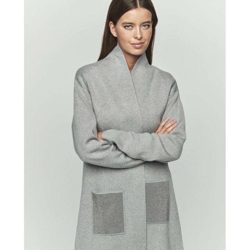Chaqueta larga de mujer. Sus bolsillos con brillo le dan un toque elegante y chic que marcan la diferencia.