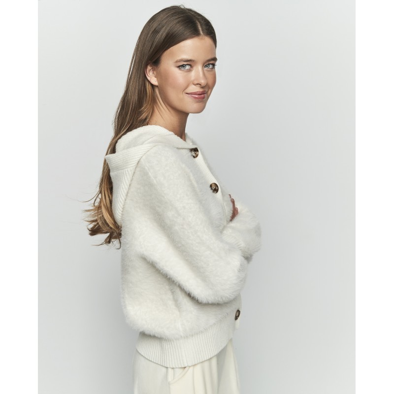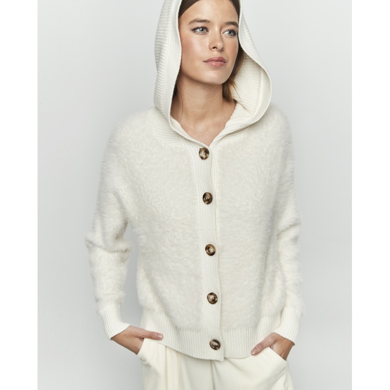 Chaqueta corta de mujer con capucha y botones delanteros. Ideal para sentirte abrigada y con estilo este invierno.