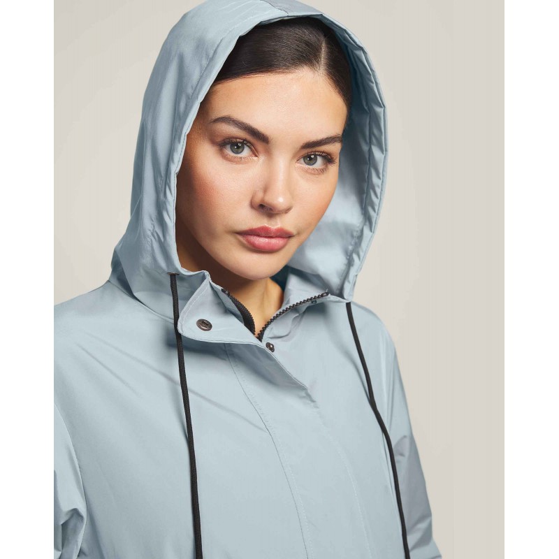 Chaqueta cortavientos deportivo de mujer de la colección Selmark Tech by Pilar Rubio. Su tejido es resistente al agua, y cuenta con capucha ajustable y tensores interiores para ajustar. Muy cómoda y perfecta para combinar con leggins a juego.