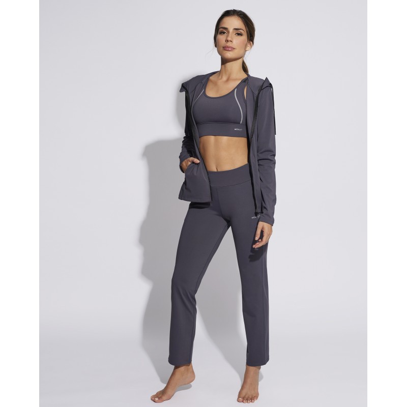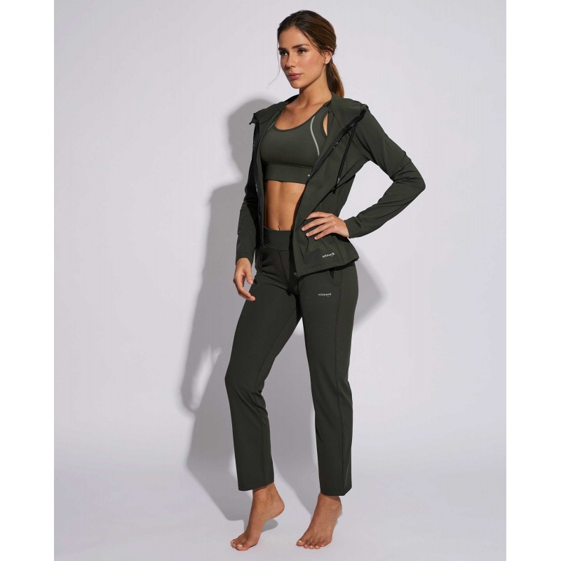 Chaqueta deportiva con cremallera recubierta para evitar contacto con la piel de la colección Selmark Tech by Pilar Rubio. Cuenta con capucha ajustable y bolsillos con cremallera. Muy cómoda y perfecta para combinar con pantalones deportivos a juego.
