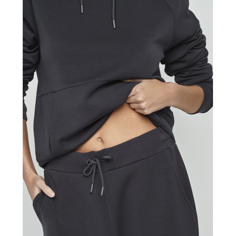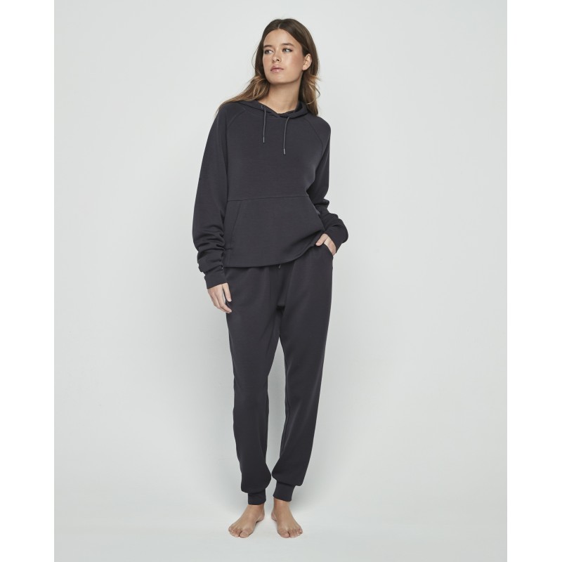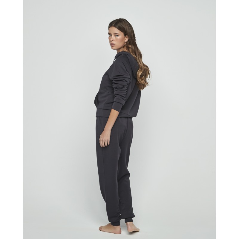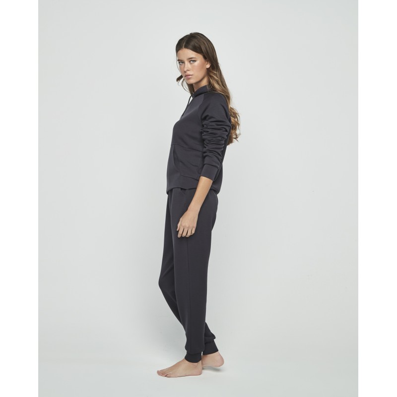 Conjunto sport compuesto por pantalón largo y sudadera de manga larga con capucha. Diseñado en materiales suaves y cómodos, ideal tanto para disfrutar de la calidez del hogar como para acompañarte en tus momentos al aire lbre.
