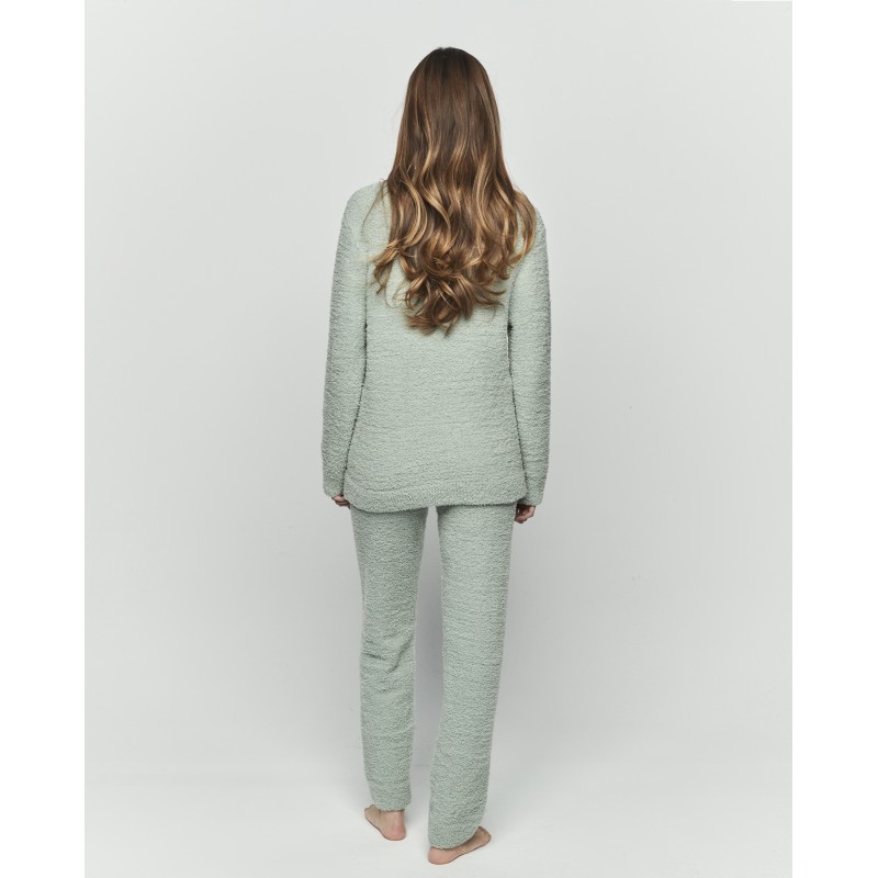 Conjunto sport compuesto por pantalón largo y sudadera de cuello redondo. Su suave y confortable tejido hará que te sientas como estar entre las nubes. Ideal para días frios de invierno.