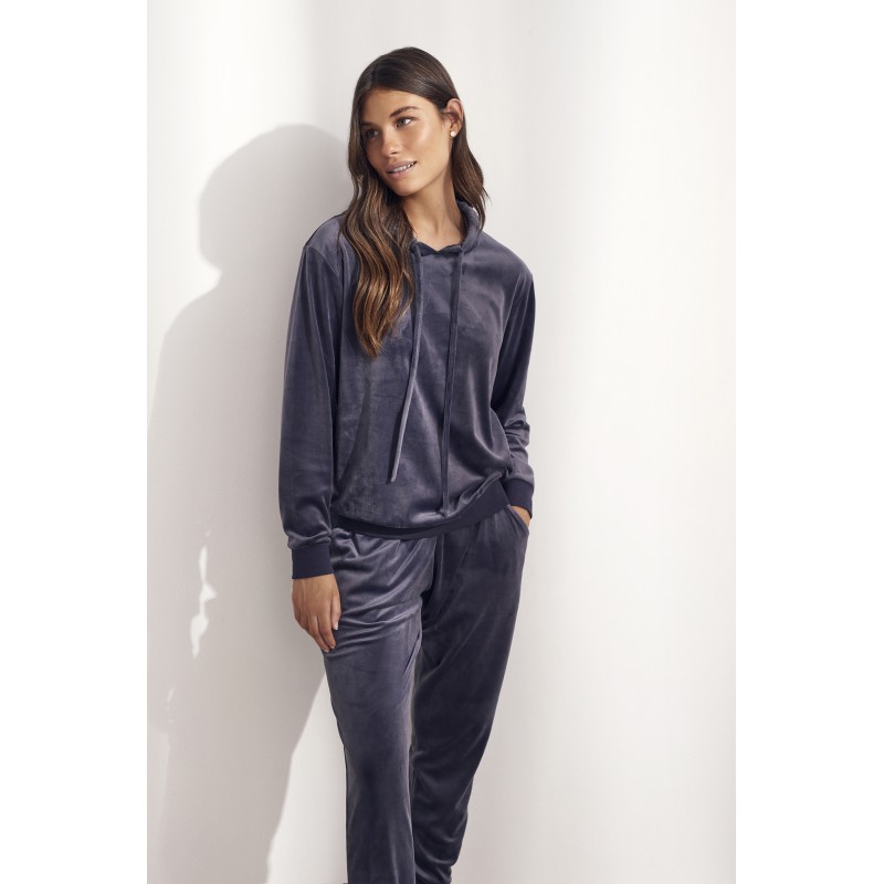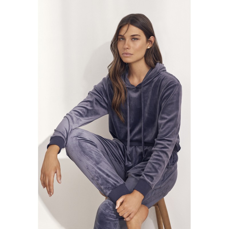 Conjunto sport aterciopeldo compuesto por pantalón largo más sudadera de manga larga con capucha. Un clásico de máxima suavidad y comodidad.