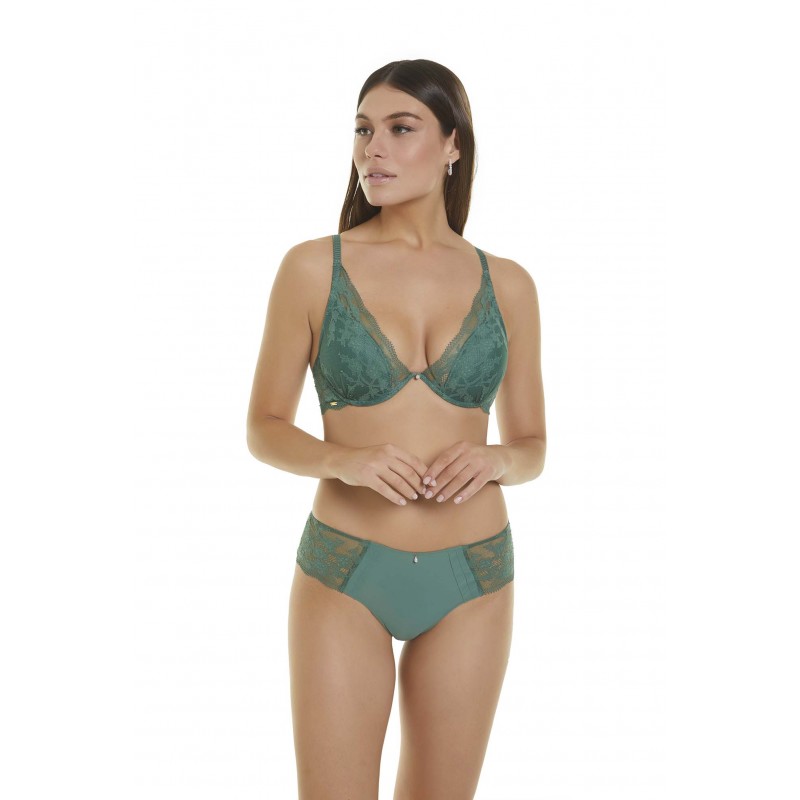 Braga culotte tanga de inspiración romántica. Su tejido cómodo y liviano de efecto papertouch combinado con la blonda floral la convierte en una pieza ultra femenina y única.