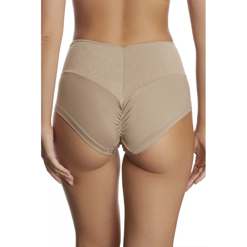 Faja de cintura alta. Moldea y reduce. El tejido de su parte superior garantiza un mayor control y la costura trasera central aporta una mejor adaptación. Con costuras invisibles efecto anti-marca. La combinación de sus tejidos brillo-mate la convierten en una prenda básica pero muy elegante.