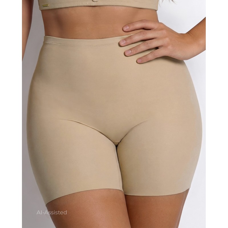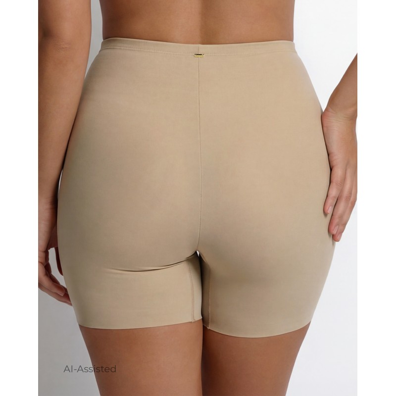 Faja de corte pantalón corto. De cintura alta e invisible bajo la ropa. No marca y además reduce y estiliza la figura. La solución perfecta para llevar con vestidos o faldas ajustadas.