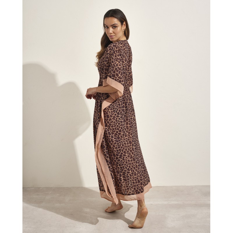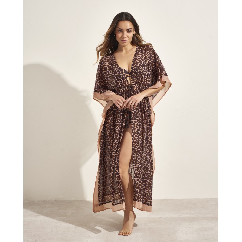 Kaftan. Con un diseño femenino y original, este estampado está inspirado en el Salar de Uyuni, donde cada figura geométrica representa la intersección entre lo natural y lo abstracto, creando un paisaje visual fascinante. Ideal para llevar sobre tu bikini o bañador.