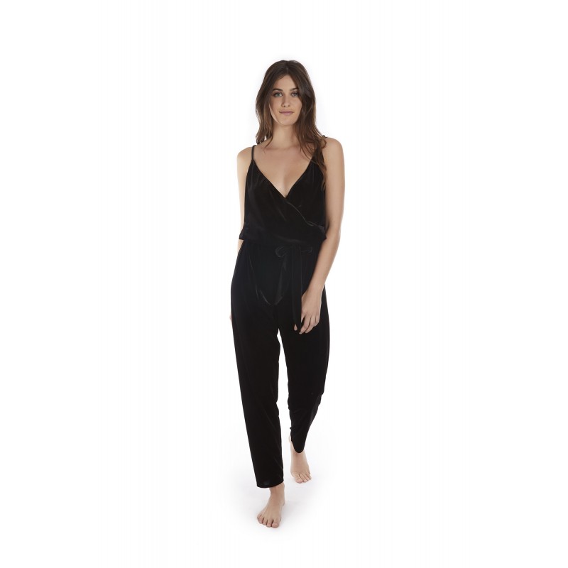 Mono de tirantes In&Out. Cálido y de terciopelo, diseñado para brillar en fiestas y eventos. De color negro.