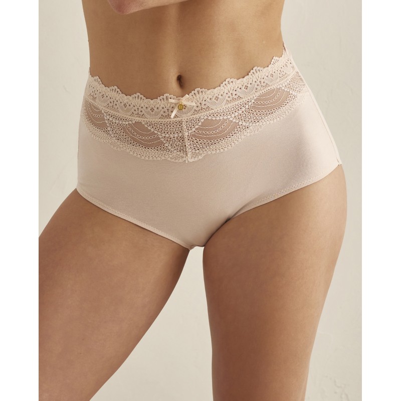 Pack de 2 unidades de braga alta de algodón combinado con encaje en la parte delantera de la cintura. Un básico imprescindible para la comodidad del día a día.