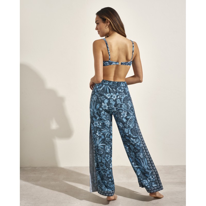 Pantalón tipo palazzo con aberturas laterales. Atrévete a destacar con un diseño único que combina sofisticación y modernidad gracias a su estampado innovador y su corte impecable. Ideal para completar tu look veraniego.