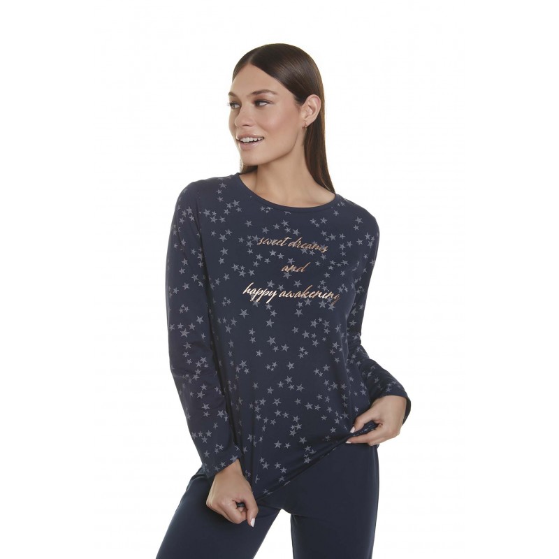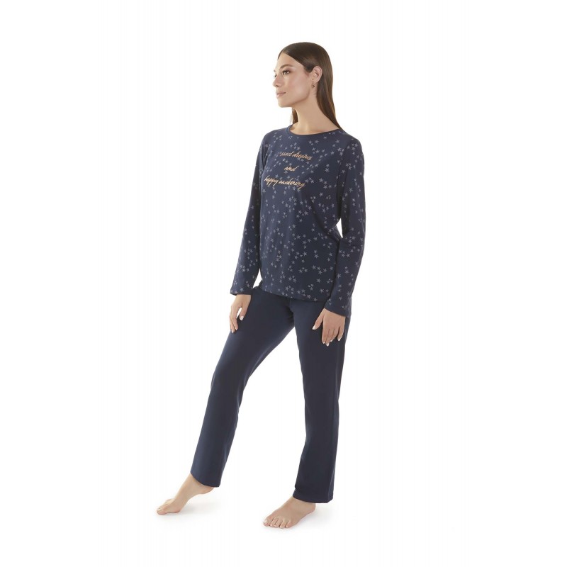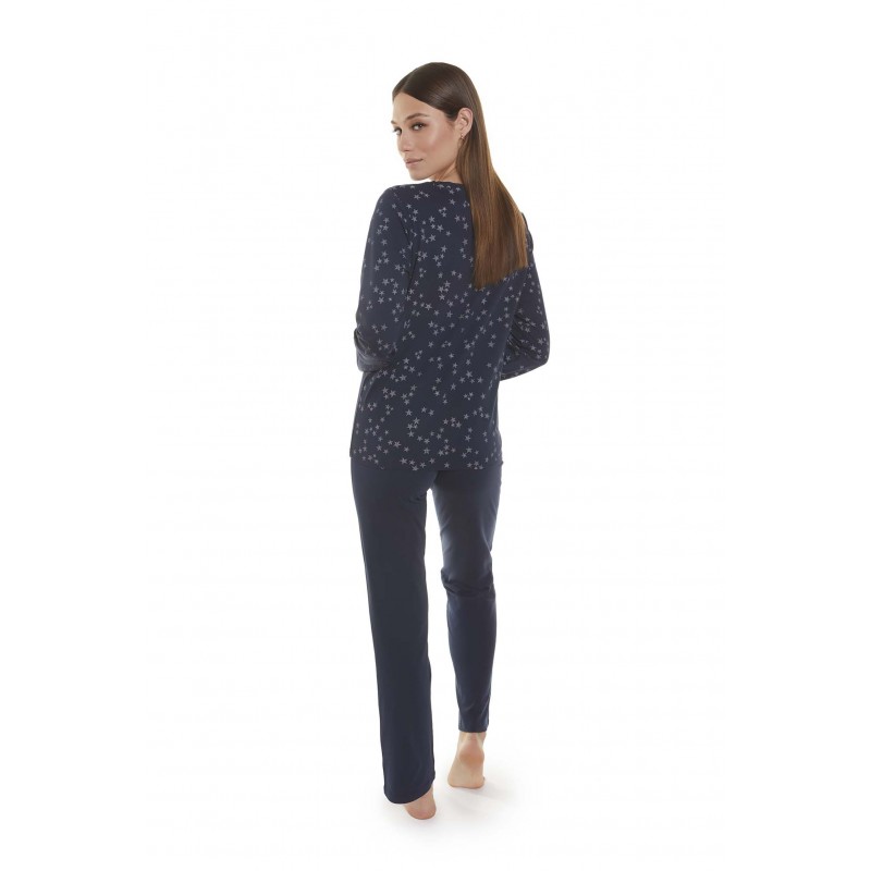 Pijama completo con pantalón largo y parte de arriba de manga larga. Un diseño en algodón que lo convierte en una prenda suave, cómoda e ideal para la temporada más fría del año.