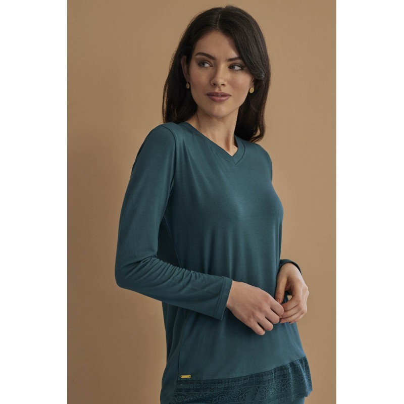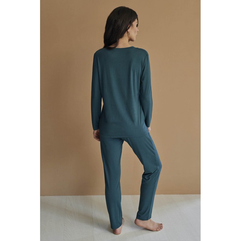 Pijama completo con pantalón largo y parte de arriba de manga larga. Un diseño básico y de estética minimalista perfecto para disfrutar cálidamente del interior del hogar.