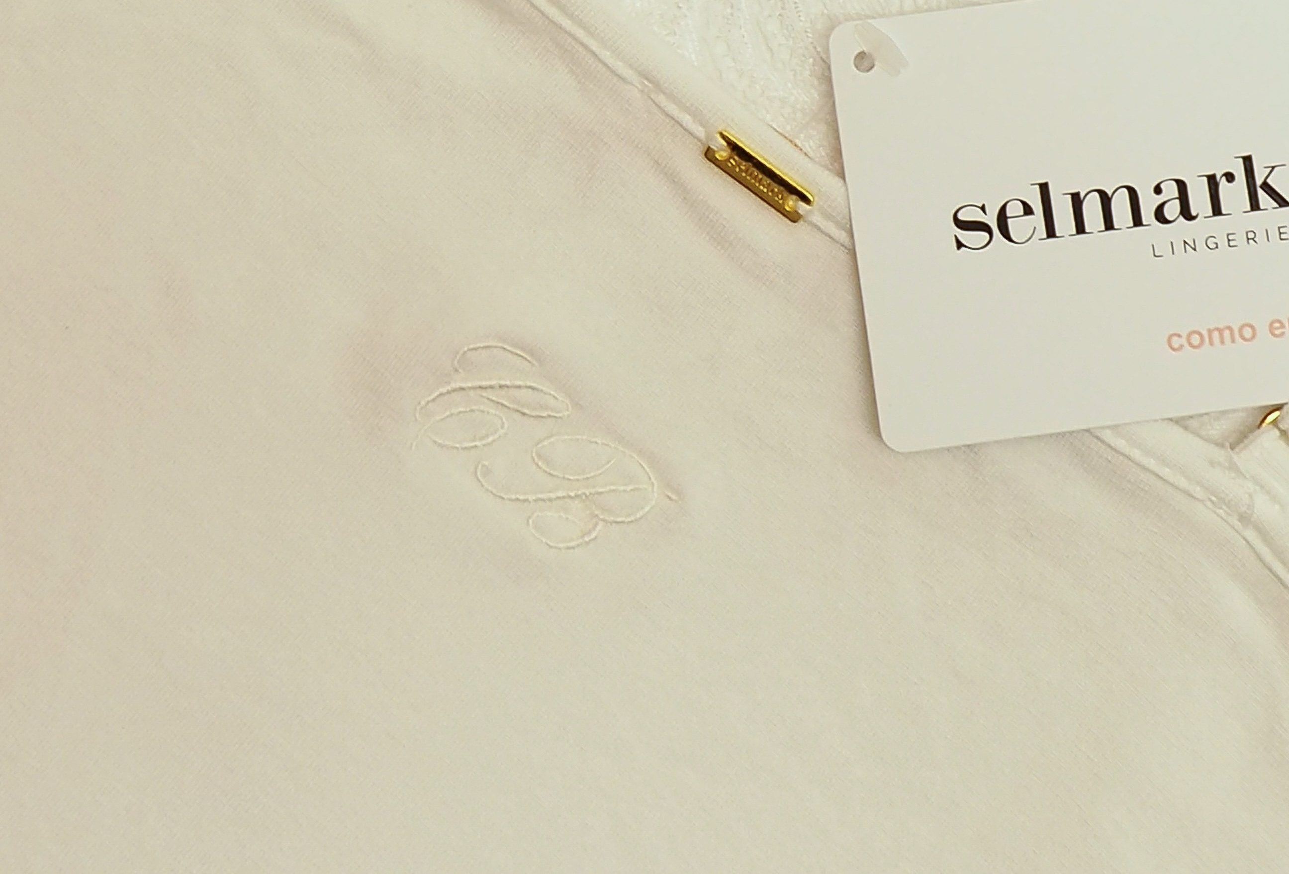 Pijama corto de dos piezas de estética romántica y rústica con detalles artesanales y de encaje que lo convierten en una pieza de diseño único, atractivo y femenino.