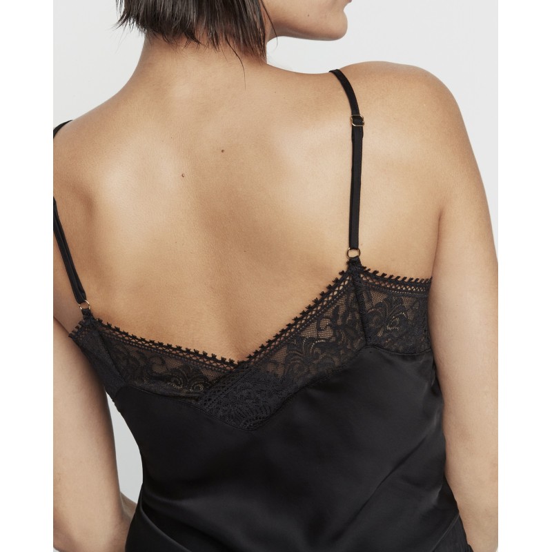 Pijama lencero de mujer de dos piezas. Incluye top con tirantes regulables y pantalón largo con bolsillos. Un conjunto con cortes impecables y acabados de lujo, perfecto para un sueño con glamour. Su diseño pertenece a la colección Aurum, creada en colaboración con Pilar Rubio para conmemorar nuestro 50 aniversario.