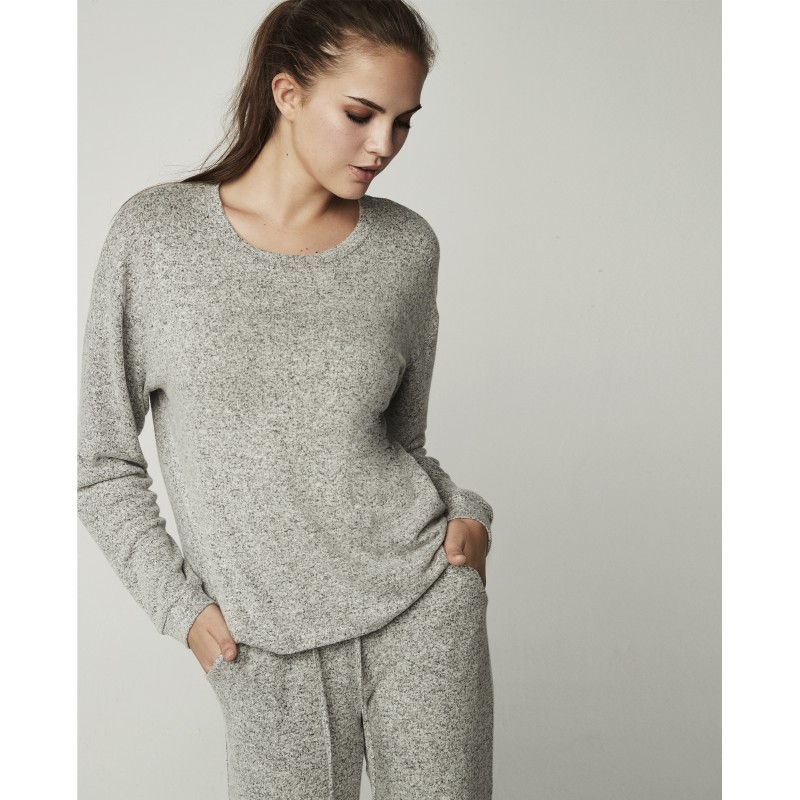 Pijama de mujer de dos piezas. Incluye camiseta de manga larga con cuello redondo y pantalón largo con bolsillos, puño y lazo ajustable. Su textura extra suave y su diseño de dos piezas te brindan comodidad y libertad de movimiento. Este pijama será tu aliado perfecto para un buen descanso y confort, ideal para las noches frías de invierno.