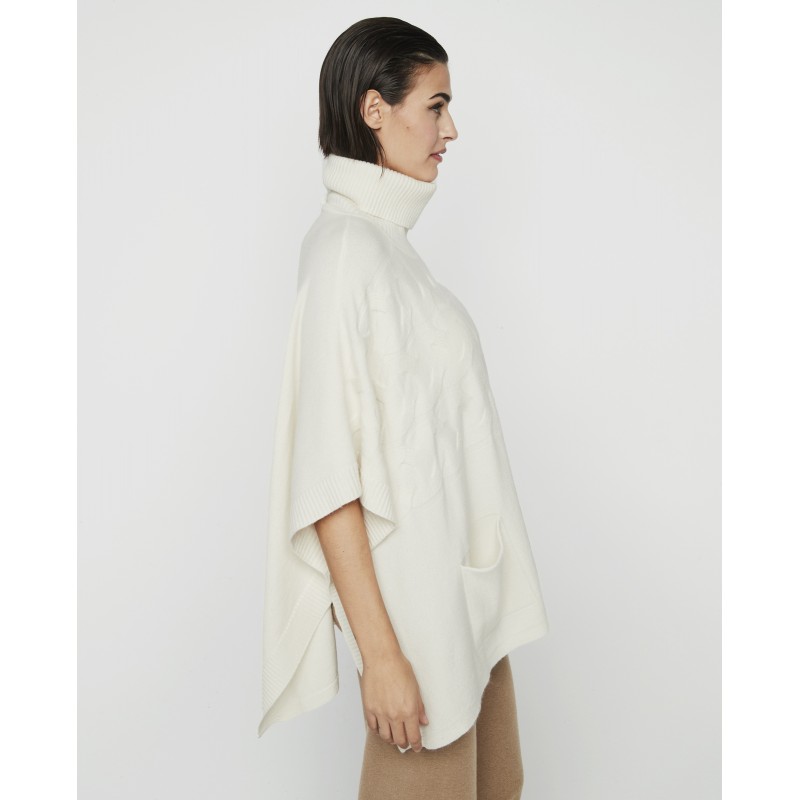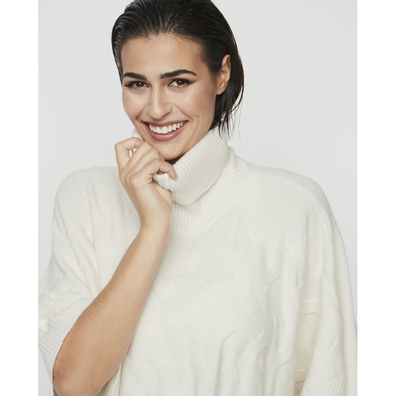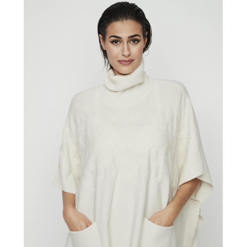 Poncho con cuello super abrigado con bolsillos y boton lateral. Una prenda funcional que no pasa de moda, ideal para este invierno.