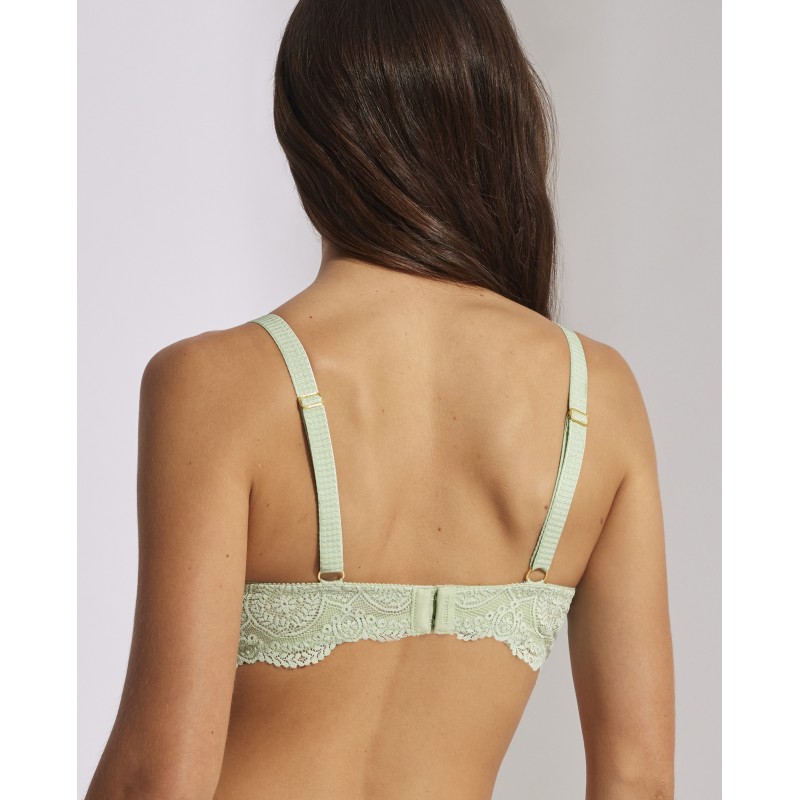 Sujetador de capacidad de escote medio. Efecto control envolvente. Ideal para las tallas más grandes. Su espectacular diseño de encaje le otorga un estilo romántico y bohemio a la vez. Este prenda conjuga sensualidad, frescura y elegancia, ideal para mujeres libres y auténticas.