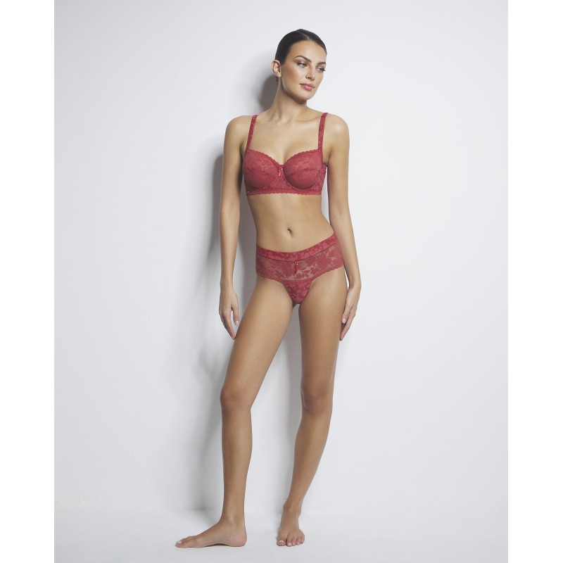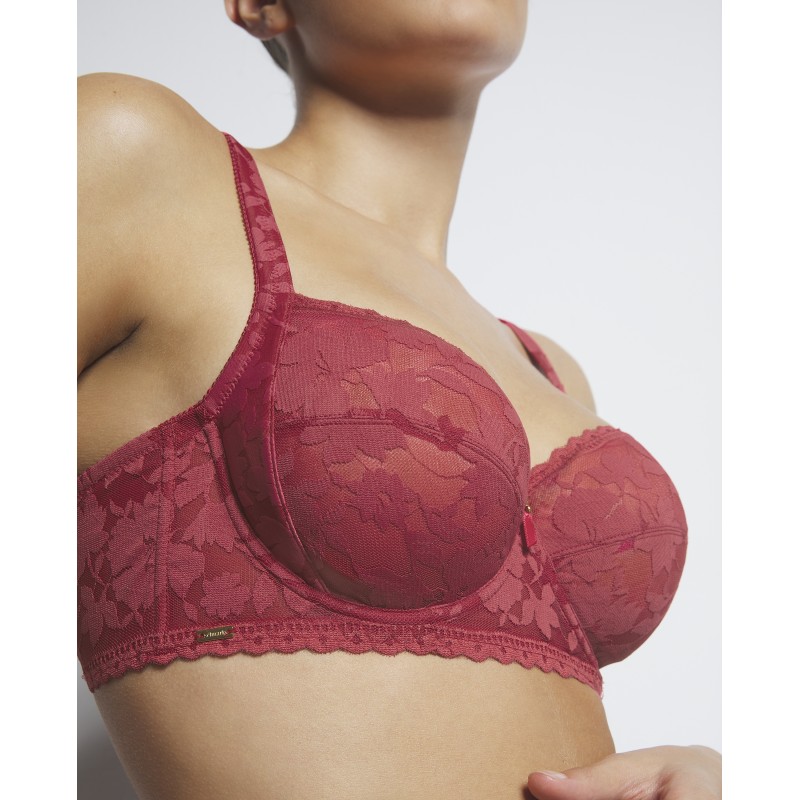 Sujetador de gran capacidad de escote alto. Efecto control envolvente y sin relleno. Ideal para las tallas más grandes. Esta prenda es una promesa de momentos especiales, un toque de misterio y seducción que transforma el poder de la feminidad en su forma más refinada y cautivadora.
