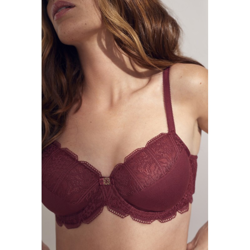 Sujetador de capacidad de escote medio. Efecto control envolvente. Ideal para las tallas más grandes. De estética muy sensual y femenina gracias a sus detalles de encaje.