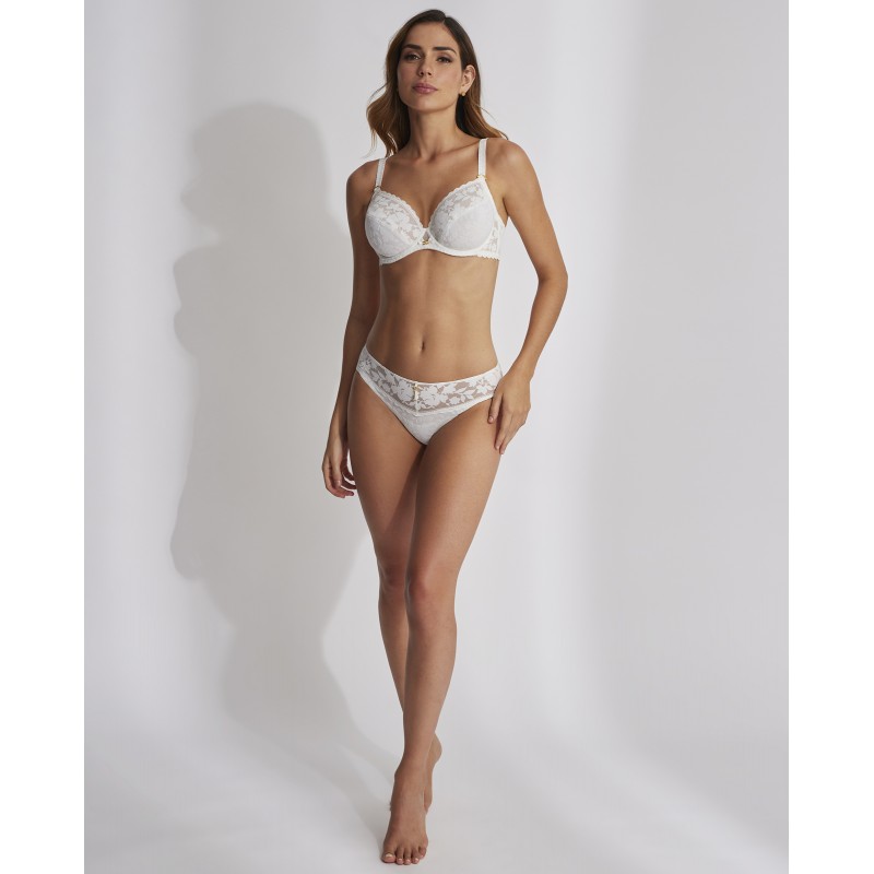 Sujetador de capacidad de escote medio. Efecto control envolvente. Ideal para las tallas más grandes. Esta prenda es una promesa de momentos especiales, un toque de misterio y seducción que transforma el poder de la feminidad en su forma más refinada y cautivadora.