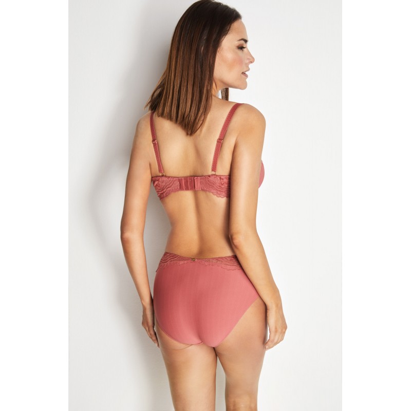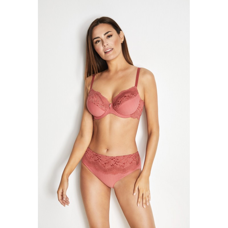 Sujetador de capacidad con escote medio y efecto control. De estética romántica y rústica con detalles artesanales y de encaje que lo convierten en una pieza de diseño único, atractivo y femenino.