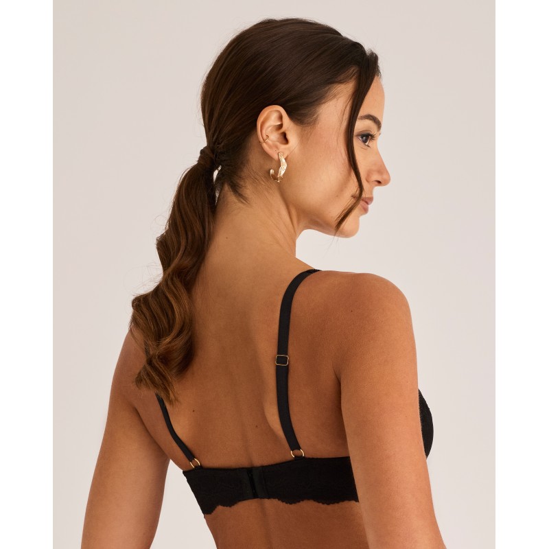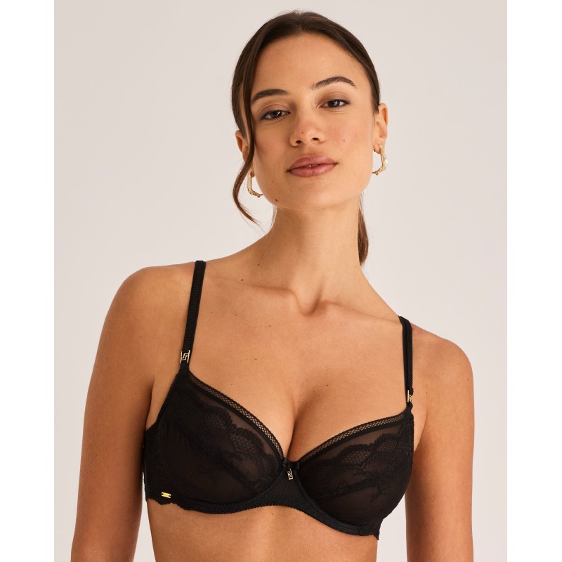 Sujetador de capacidad de escote medio y encaje. Efecto control envolvente. Cuenta con aro, base, y varilla lateral. No tiene copa de foam. Ideal para las tallas más grandes. Su espaldilla está forrada de tul de control y tiene dos medidas de ancho de los tirantes según la talla, al igual que ocurre con su corchete de cierre, con la finalidad de adaptarse para aportar comodidad y la mejor sujeción. Una pieza que fusiona elegancia y confort, diseñada para mujeres reales, libres y seguras. Pertenece a la colección Manuela, pensada para realzar la belleza que nace desde dentro celebrando la autenticidad de cada mujer. Para quienes quieren sentirse no solo bellas, sino cómodas y seguras en su propia piel.