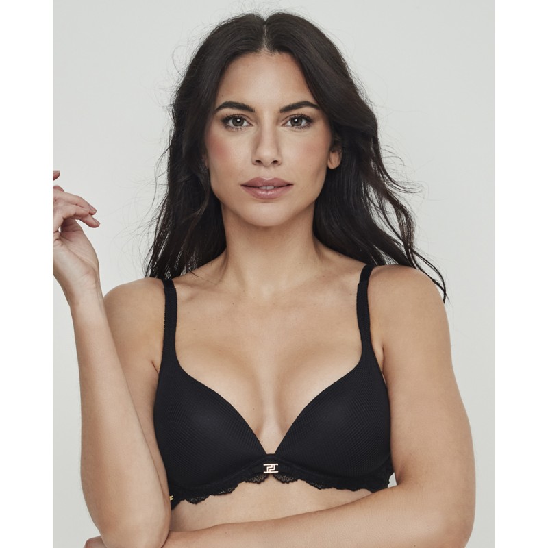 Sujetador de escote profundo. Cuenta con copa de foam y no tiene aros. Sus tirantes tienen hebillas planas que no abultan. Es una pieza que fusiona elegancia y confort, diseñada para mujeres reales, libres y seguras. Pertenece a la colección Manuela, pensada para realzar la belleza que nace desde dentro celebrando la autenticidad de cada mujer. Para quienes quieren sentirse no solo bellas, sino cómodas y seguras en su propia piel.