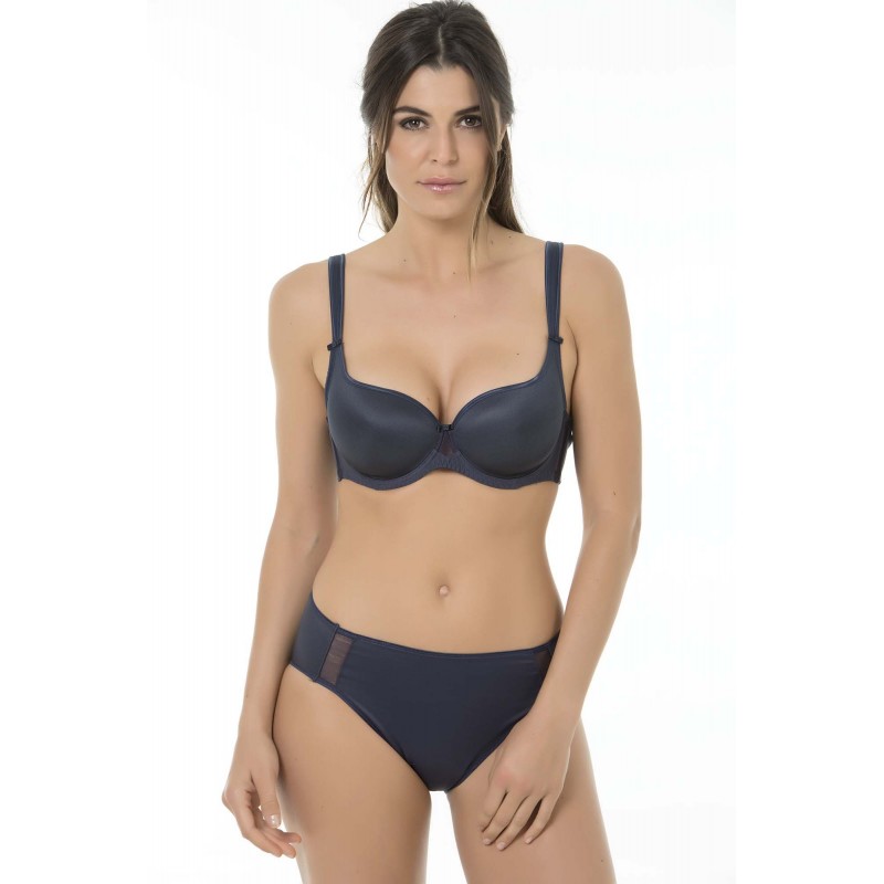 Sujetador esencial moldeador con efecto envolvente. Un modelo clásico, práctico y muy cómodo. Fabricado en un tejido ligero que no marca costuras y garantiza sujeción. De color azul.