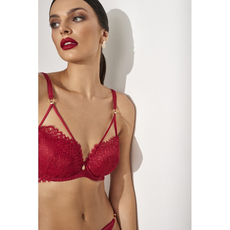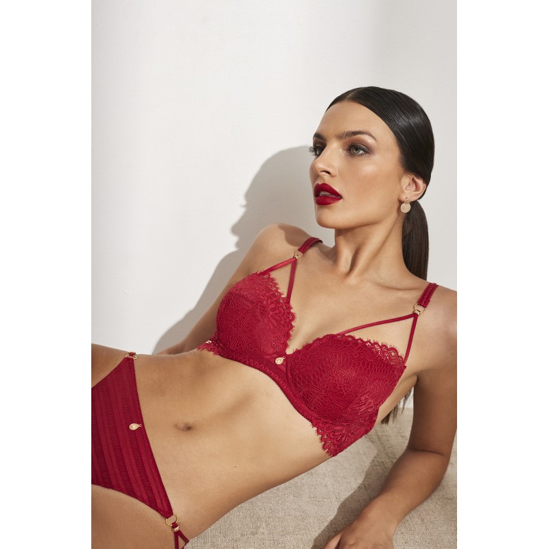 Sujetador esencial moldeador. Efecto envolvente. Combina una preciosa blonda geométrica y floral con un sutil adorno dorado. Este diseño inspirado en la diversión y la libertad, es ideal para disfrutar de nuestro lado más salvaje.