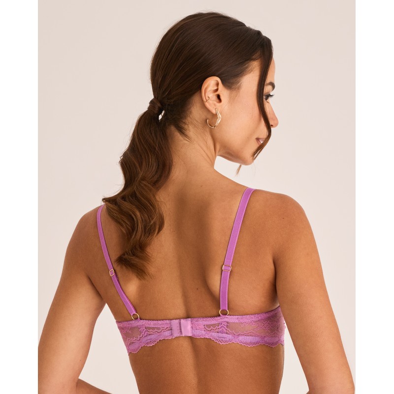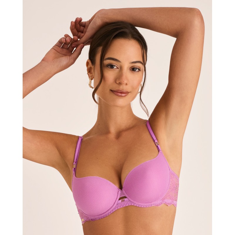 Sujetador moldeador de copa lisa con detalles de encaje en la parte trasera. Cuenta con aros y copas de foam. Efecto envolvente. Tiene dos posibles medidas de ancho de los tirantes según la talla, al igual que ocurrre con su corchete de cierre. Todo ello para garantizar una gran comodidad y buena sujeción. La hebilla de sus tirantes es plana, no abulta. Es una pieza que fusiona elegancia y confort, diseñada para mujeres reales, libres y seguras. Pertenece a la colección Manuela, pensada para realzar la belleza que nace desde dentro celebrando la autenticidad de cada mujer. Para quienes quieren sentirse no solo bellas, sino cómodas y seguras en su propia piel.