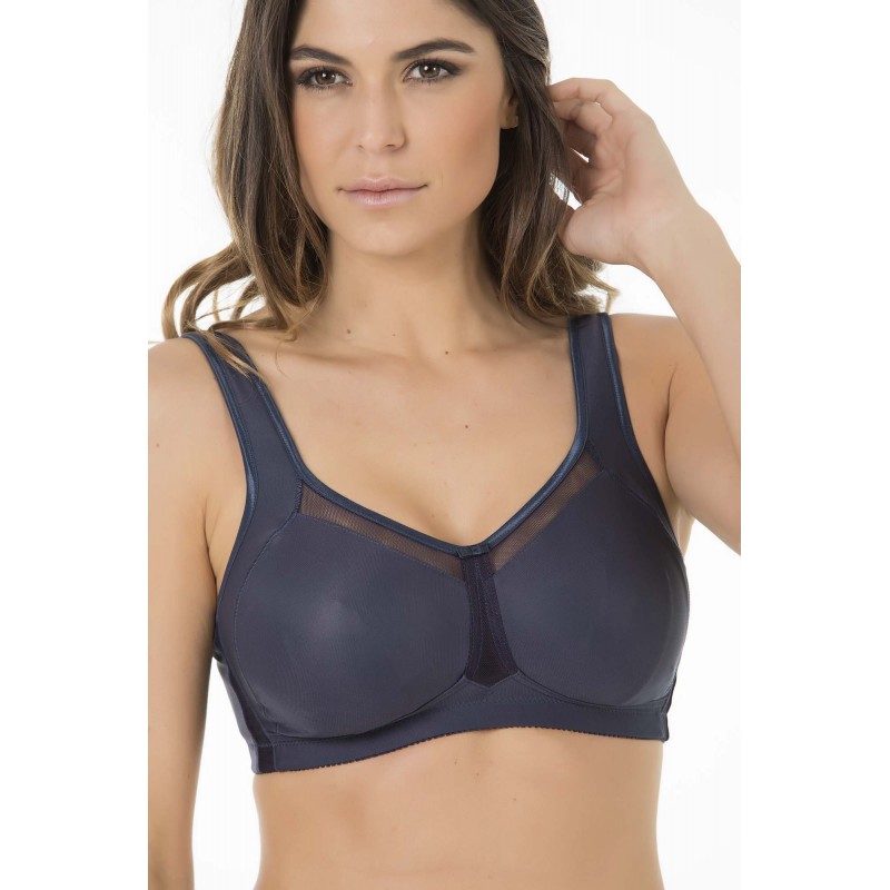 Sujetador confort sin aros de Selmark Care. Sin relleno, con tirantes acolchados y con un bolsillo interno, especial para prótesis. Desarrollado para mujeres que necesitan incorporar una prótesis tras una intervención de mastectomía o tumorectomía. De color azul.