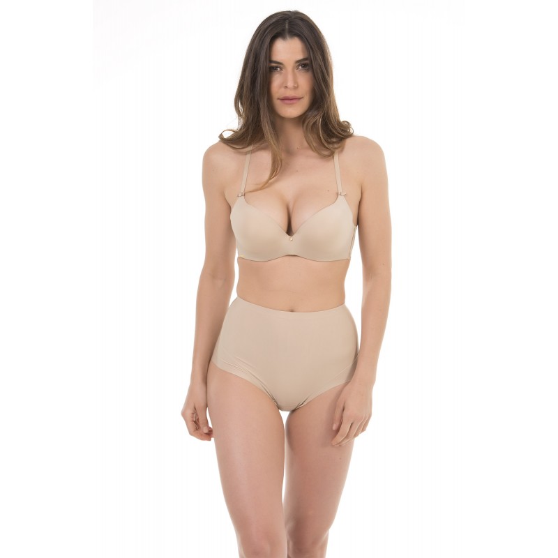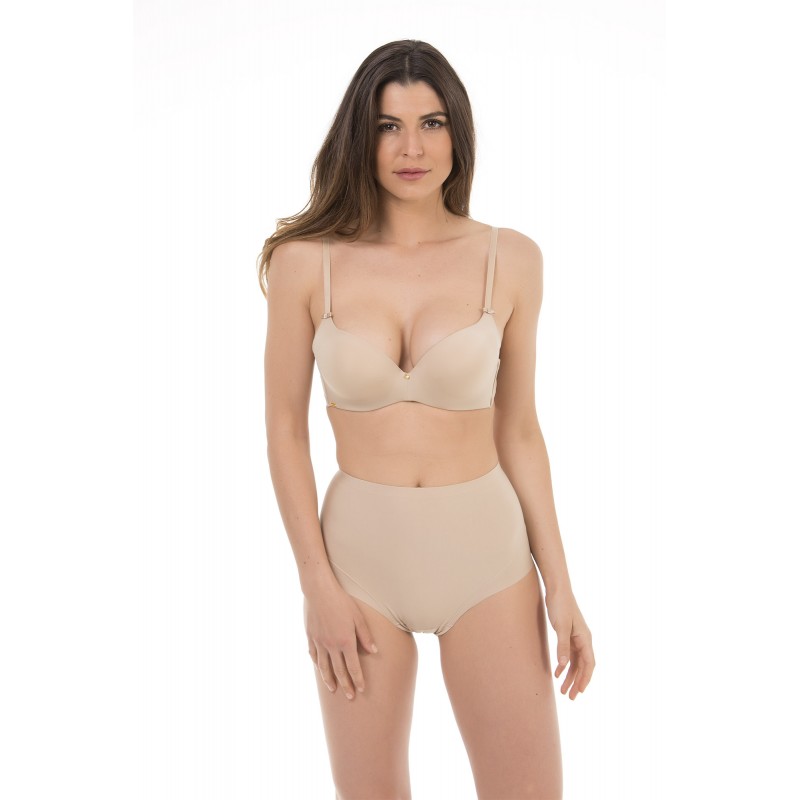 Sujetador Push Air. Con un ligero relleno para un realce natural gradual y muy discreto. Moldea el pecho. Efecto segunda piel que no marca bajo la ropa. De color piel.