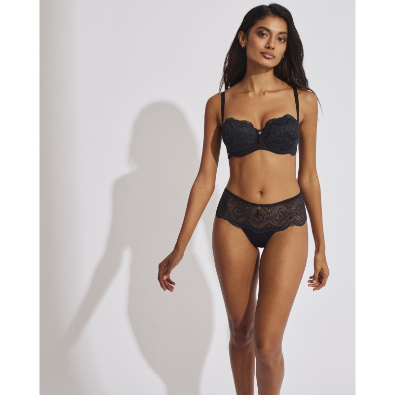 Sujetador sin tirantes con relleno. Efecto push up, realza el pecho y aumenta hasta una talla. Su espectacular diseño de encaje le otorga un estilo romántico y bohemio a la vez. Este prenda conjuga sensualidad, frescura y elegancia, ideal para mujeres libres y auténticas.