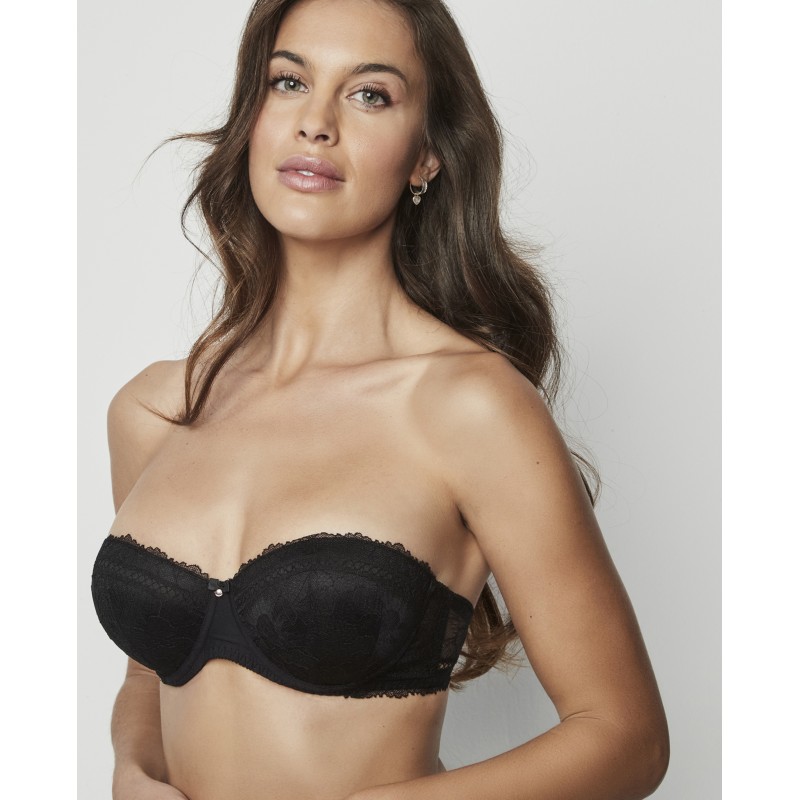 Sujetador sin tirantes con push up y encaje floral. Se incluyen tirantes extraibles para colocar siempre que se quiera. Cuenta con aros y copa interior de foam con push up. Tiene varillas laterales, base antideslizante, y ribete de silicona para evitar el indeseado efecto de deslizamiento. Una prenda delicada y sofisticada. La colección Agatha, a la que pertenece, encarna la madurez y el esplendor de la marca, ofreciendo piezas que no solo adornan, sino que transforman. Una colección con encanto y carisma.