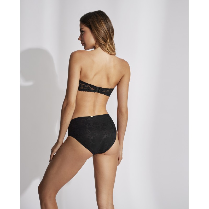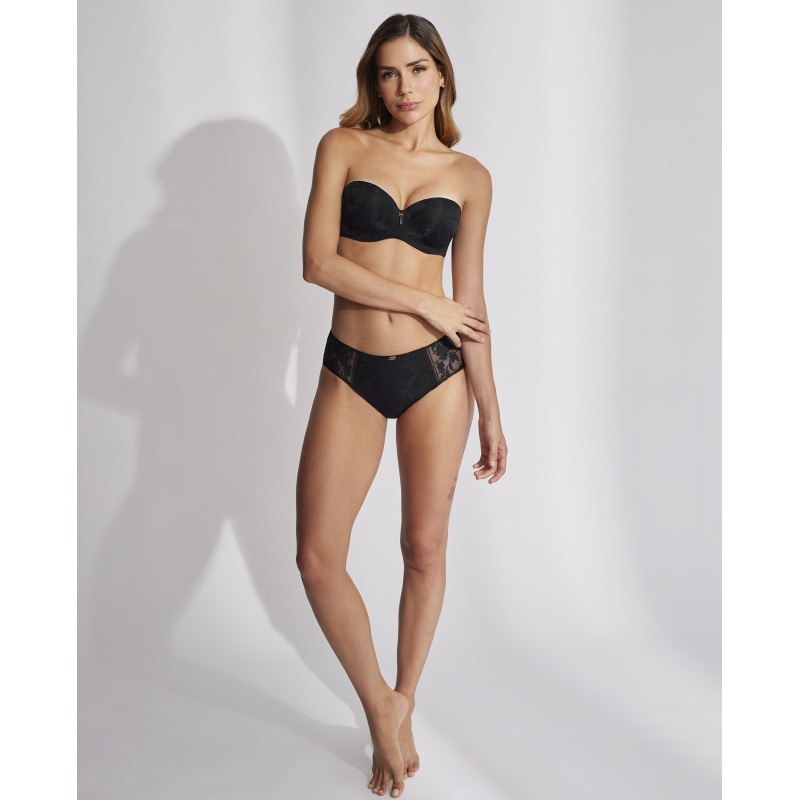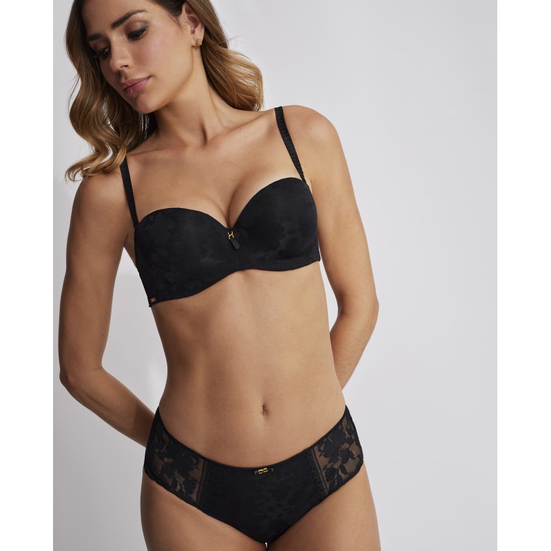 Sujetador sin tirantes con relleno. Efecto push up, realza el pecho y aumenta hasta una talla. Esta prenda es una promesa de momentos especiales, un toque de misterio y seducción que transforma el poder de la feminidad en su forma más refinada y cautivadora.