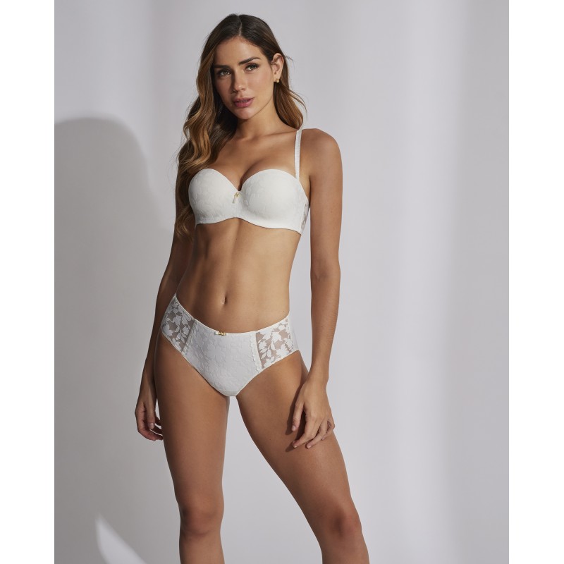 Sujetador sin tirantes con relleno. Efecto push up, realza el pecho y aumenta hasta una talla. Esta prenda es una promesa de momentos especiales, un toque de misterio y seducción que transforma el poder de la feminidad en su forma más refinada y cautivadora.