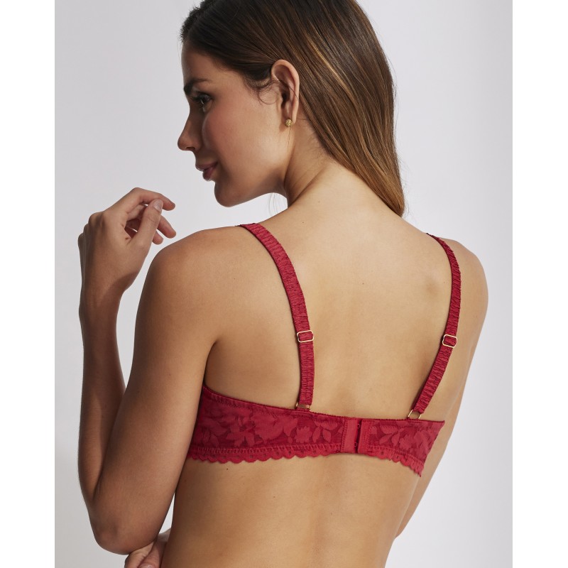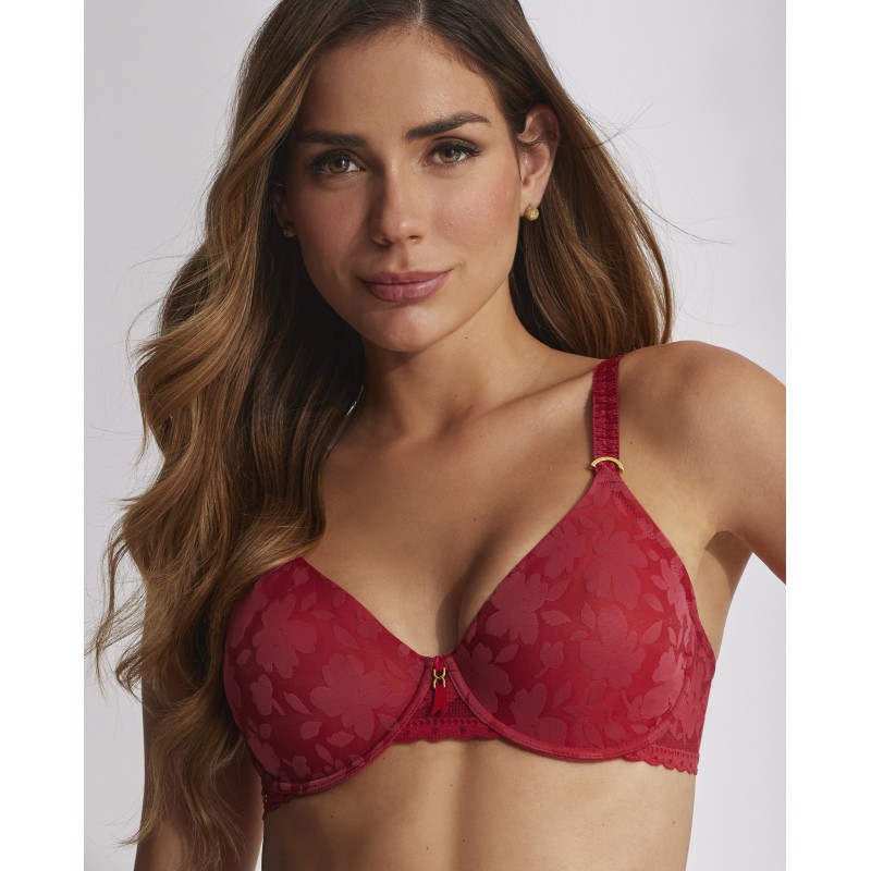 Sujetador efecto reductor. Con aro y sin relleno. Contiene y reduce visiblemente el pecho. Esta prenda es una promesa de momentos especiales, un toque de misterio y seducción que transforma el poder de la feminidad en su forma más refinada y cautivadora.