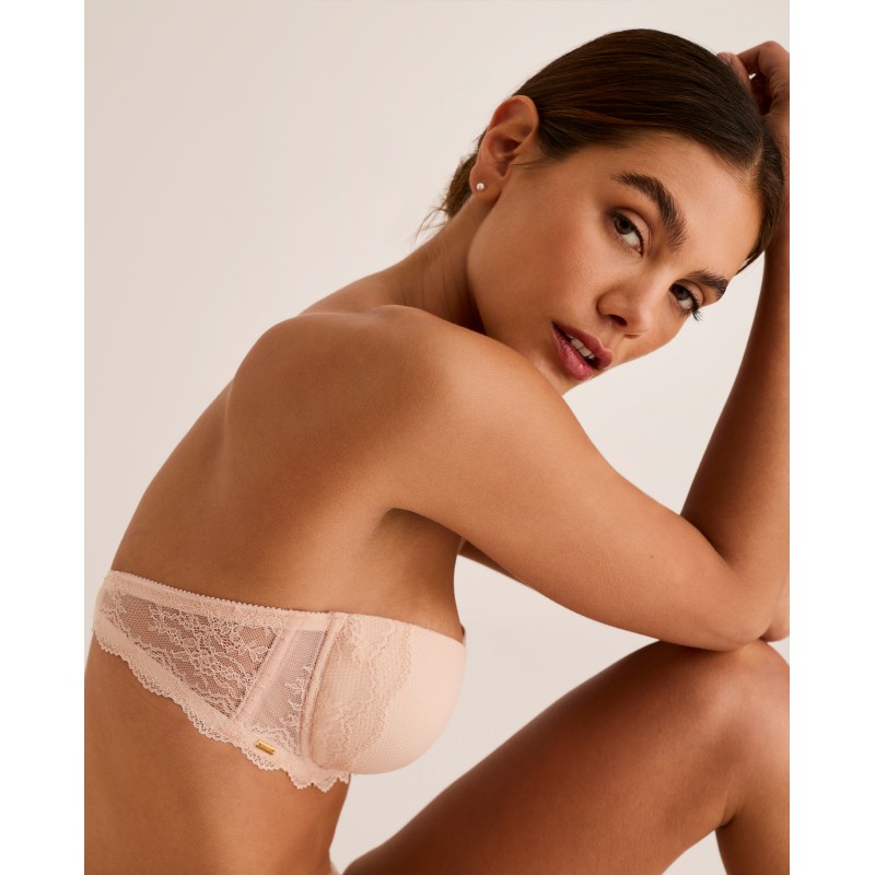 Sujetador con tirantes extraibles. Con foam prehormado y aro. Incluye ribete de silicona antideslizante y varillas laterales. Realza el pecho y garantiza una buena sujeción evitando el indeseado efecto de deslizamiento. Una pieza que fusiona elegancia y confort, diseñada para mujeres reales, libres y seguras. Pertenece a la colección Manuela, pensada para realzar la belleza que nace desde dentro celebrando la autenticidad de cada mujer. Para quienes quieren sentirse no solo bellas, sino cómodas y seguras en su propia piel.