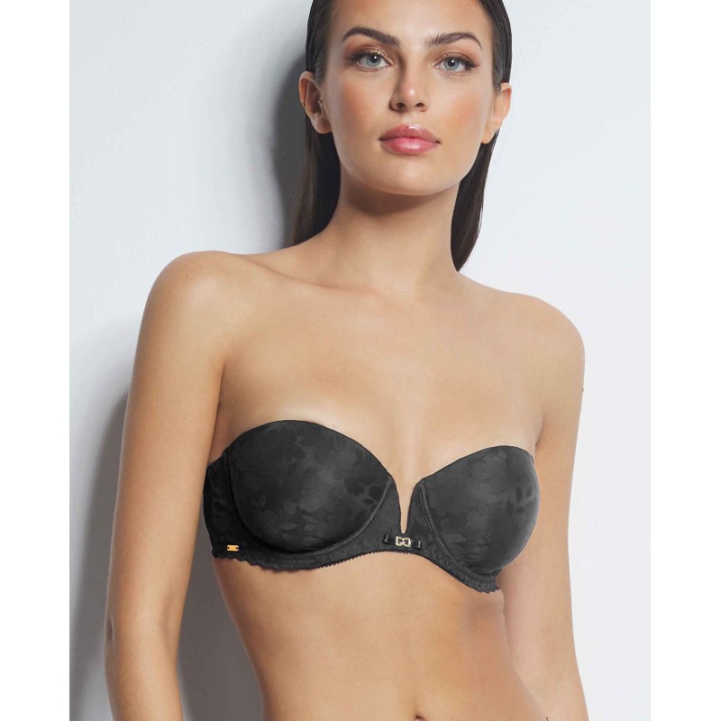 Sujetador con tirantes extraibles. Con foam prehormado y aro. Realza el pecho y garantiza una buena sujeción evitando el indeseado efecto de deslizamiento. Esta prenda es una promesa de momentos especiales, un toque de misterio y seducción que transforma el poder de la feminidad en su forma más refinada y cautivadora.