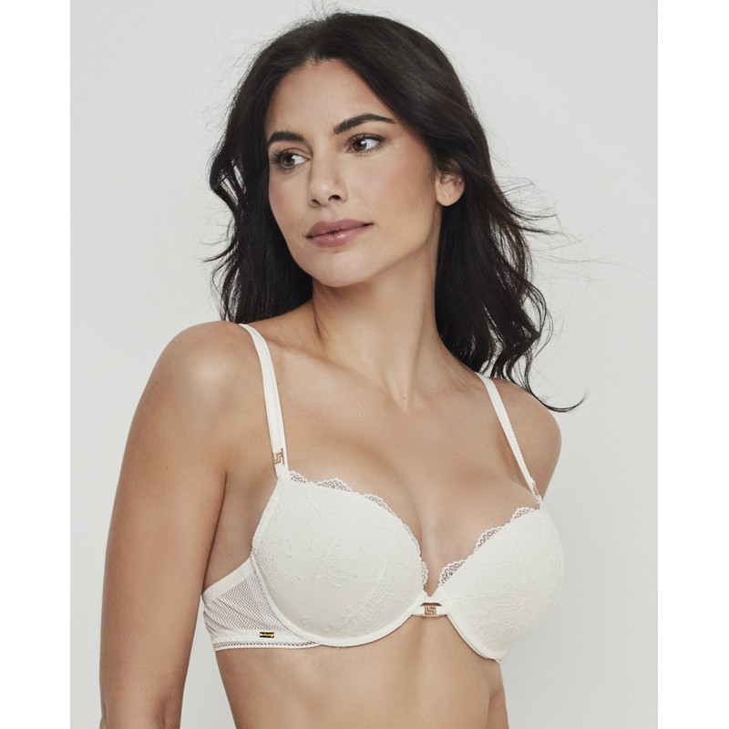 Sujetador superbra con doble relleno. Reafirma el pecho y aumenta hasta dos tallas. Cuenta con aros y copas de foam doble push up. Sin base. Sus tirantes tienen hebillas planas que no abultan y, además, cuentan con ganchos multiposición que permiten unirlos en la parte superior de la espalda para lucir un escote halter o una espalda de nadadora sin que queden a la vista. Es una pieza que fusiona elegancia y confort, diseñada para mujeres reales, libres y seguras. Pertenece a la colección Manuela, pensada para realzar la belleza que nace desde dentro celebrando la autenticidad de cada mujer. Para quienes quieren sentirse no solo bellas, sino cómodas y seguras en su propia piel.