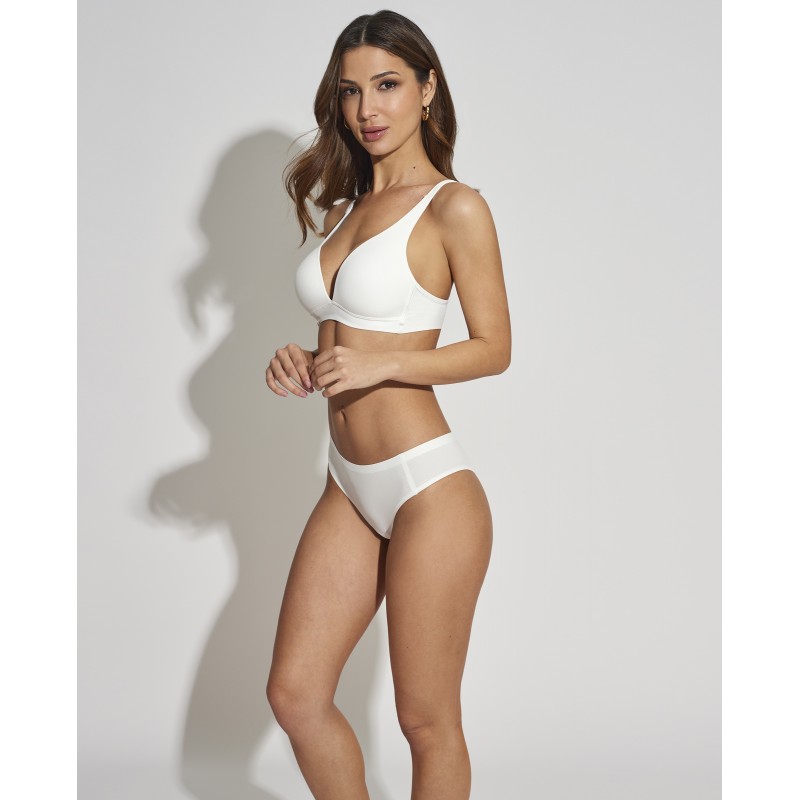 Sujetador triangular sin aro. De estética simple, básica y funcional para el día a día. Ideada para sentirse libre y cómoda en toda ocación.