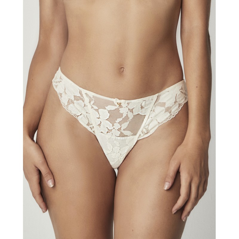 Braguita tanga de encaje floral combinado con piqué en su parte trasera, aportando suavidad y creando líneas limpias. Una pieza de lencería sofisticada en la que elegancia y confort van de la mano. La colección Federica, a la que pertenece, se caracteriza por formas y estructuras trabajadas con precisión para realzar los contornos de cada mujer y empoderar su confianza, celebrando la individualidad y la feminidad en su máxima expresión.